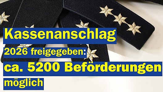Die Bundespolizei kann ab sofort rund 5200 Beförderungen aussprechen. Angesichts der insgesamt angespannten Haushaltslage ist es sinnvoll, dringend die vollständige Ausschöpfung aller Möglichkeiten in Betracht zu ziehen.