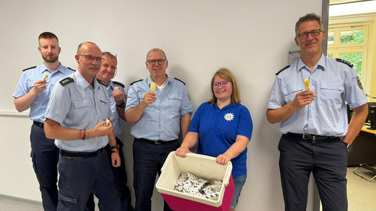 Hannover. Die neu in den Vorstand des Ortsverbandes Hannover gewählte Kollegin Franziska Schier-Ritzke nutzte die Gunst und das schöne Wetter, um auf ihrer Dienststelle BPOLI Flughafen Hannover den schwitzenden Kollegen eine kühle Erfrischung zu reichen.